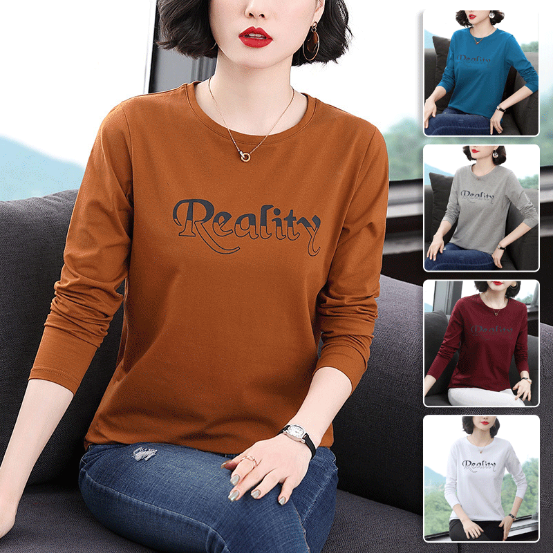 【熱氣爆款,限量特惠】韓版寬鬆大碼長袖T恤上衣,潮流印花中年媽媽打底衫,純棉舒適,品質可靠